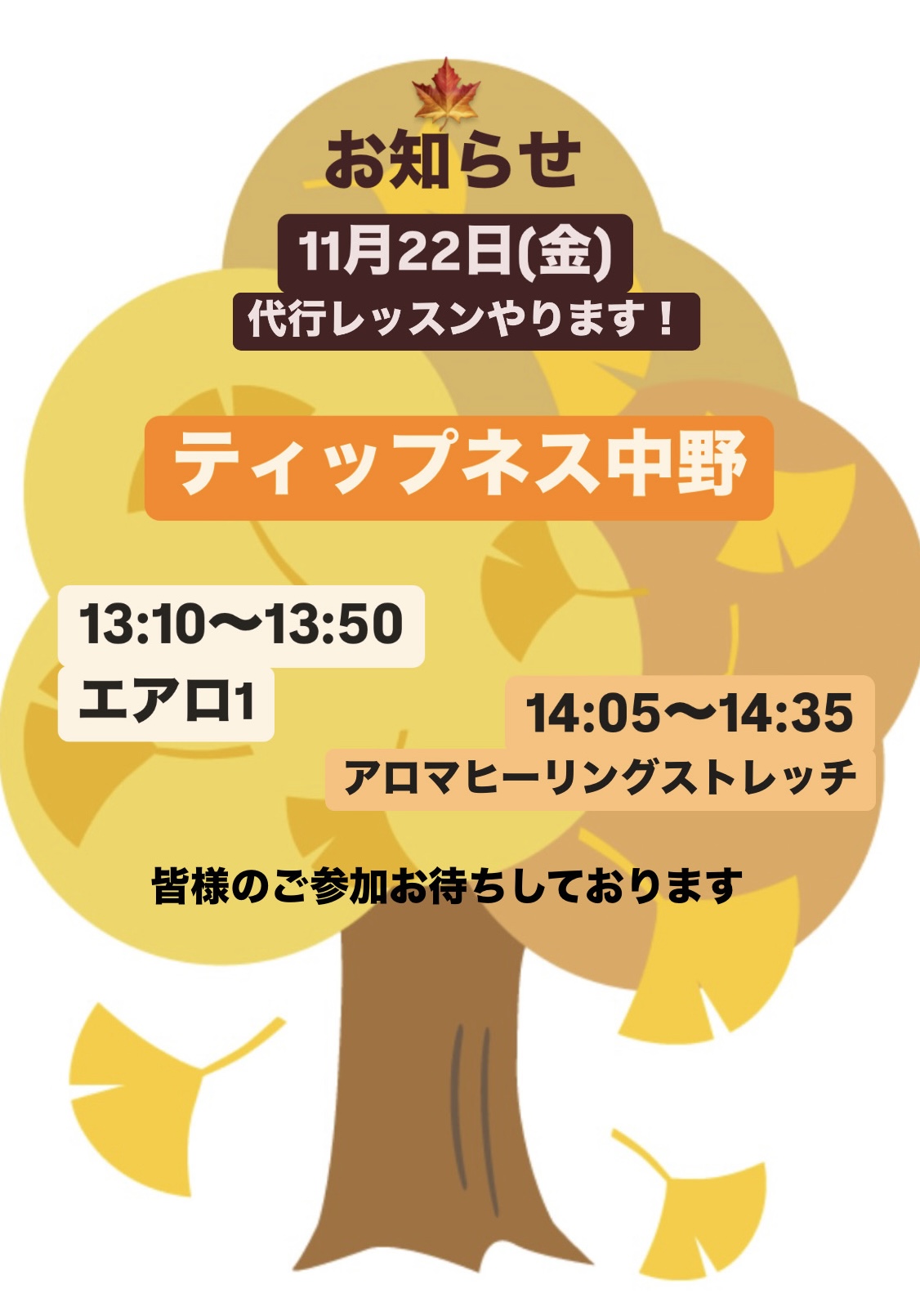 ティップネス中野で代行レッスンやります!