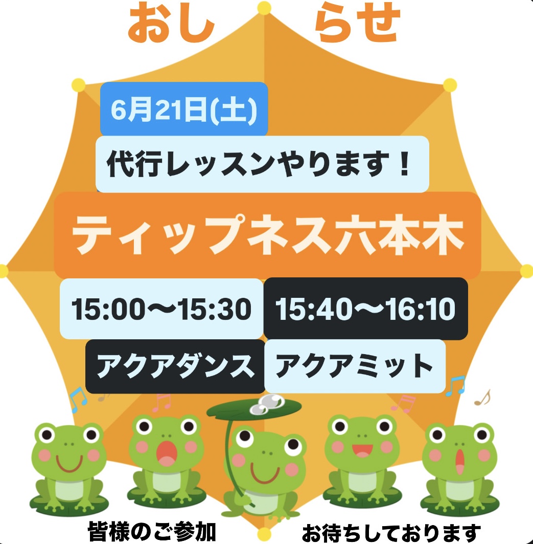 ティップネス六本木で代行レッスンやります!