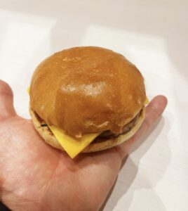 チーズバーガーを袋から出して…